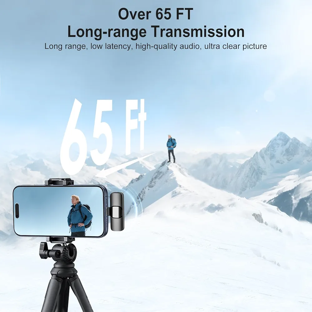 【Long Battery Life & 65ft Range】Clip this compact lapel mic to your collar and record for 12 hours solo or 6 hours dual-mic sessions,and you can charge your phone while recording via the receiver’s passthrough port. No more battery anxiety during shoots!The 66ft range allows for unrestricted movement without losing connection, enabling capture of every detail with studio-quality audio.